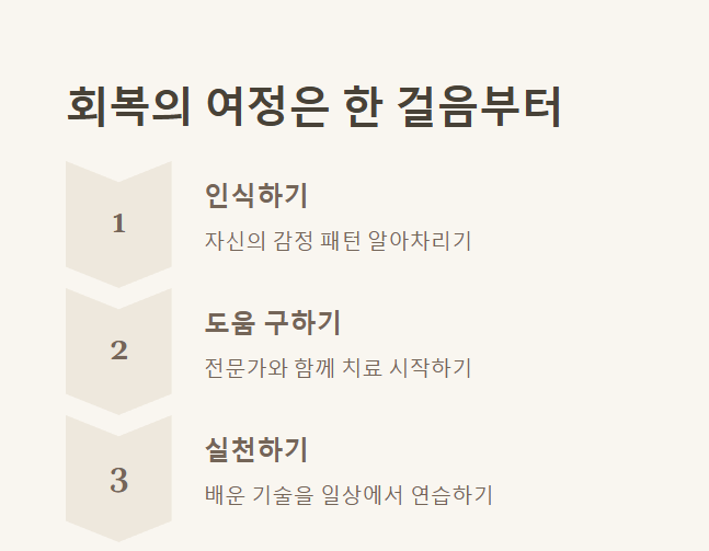 과거에는 치료가 어렵다고 했지만, 최근에는 "변증법적 행동 치료(DBT)"와 "마음 헤아리기 치료" 같은 방법으로 많은 분들이 극복하고 있어요.