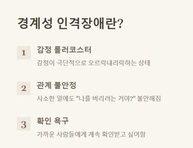 감정 기복, 대인관계 불안정, 충동적인 행동 등 주요 증상과 원인을 쉽게 설명합니다.