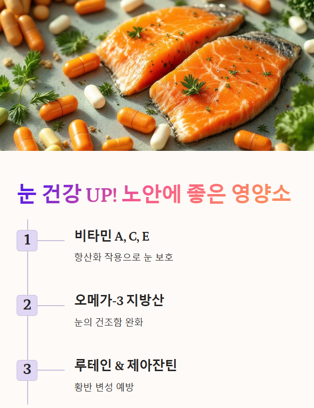 올바른 식습관은 눈 건강 유지에 필수적입니다! 눈 건강을 지켜주는 영양소와 함께 챙겨 드세요.