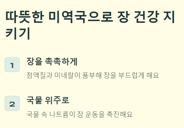 ✅ 3. 따뜻한 미역국 – 장을 촉촉하게!