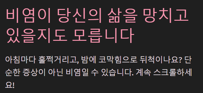 어느 날, 친한 친구가 “너 비염 아니야?”라고 하더라고요.