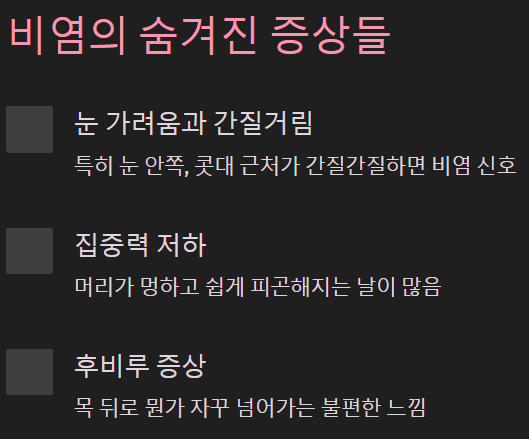 특히 눈 안쪽, 콧대 근처가 간질간질하거나 화장할 때 여기가 따끔거리면, 그게 바로 비염의 신호일 수 있어요.