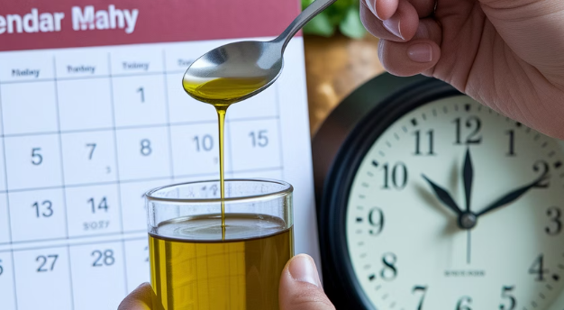 - 식사 30분 전, 공복 상태에서 올리브유를 드세요.