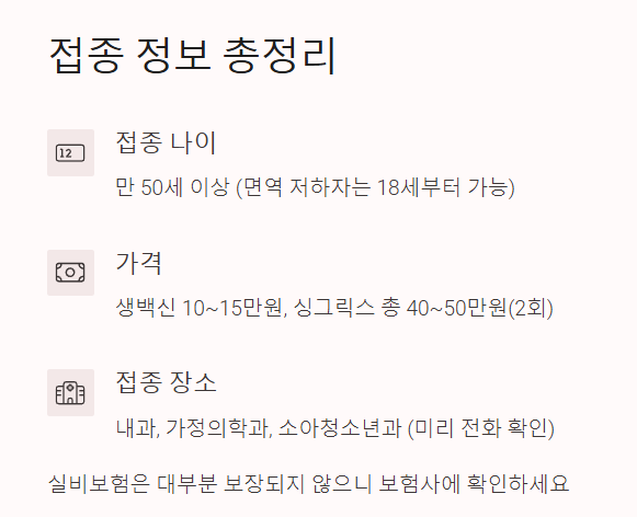 저도 병원에서 “가능하면 싱그릭스 맞으세요”라고 권유받았고, 실제로도 만족했어요.
