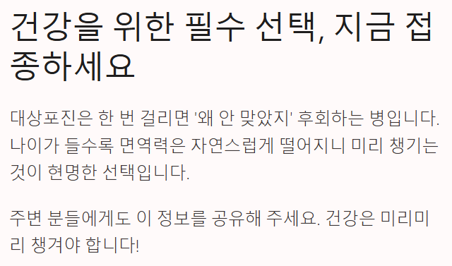 재발 예방 차원에서도 꼭 접종하는 걸 추천하더라고요.